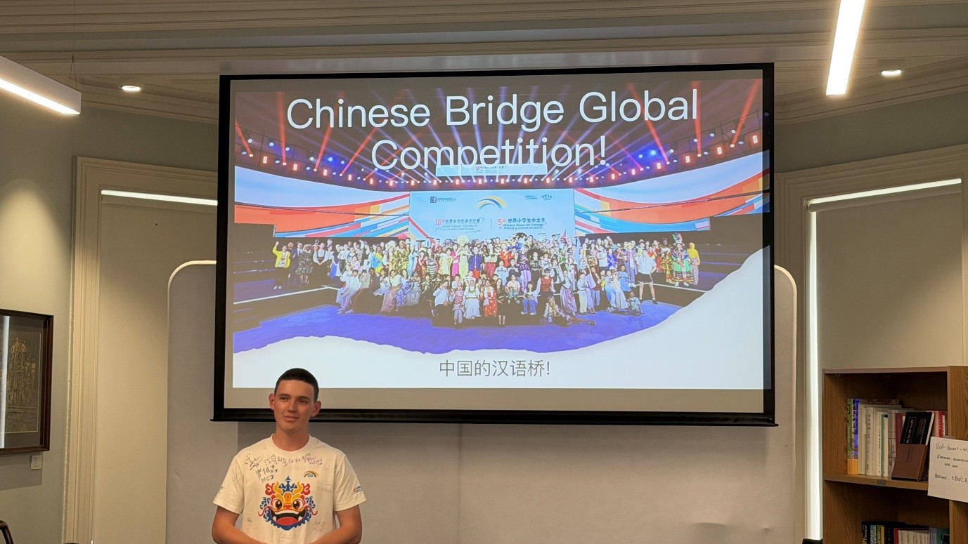 Jin Kaibo’s energetic presentation was a highlight of the day. He shared his journey from learning Chinese to competing on the world stage, describing how he overcame language barriers, prepared for the finals in China, and navigated cultural knowledge challenges alongside contestants from around the world. His stories, insights, and practical learning tips deeply motivated the students, drawing frequent applause and creating a strong atmosphere of encouragement.